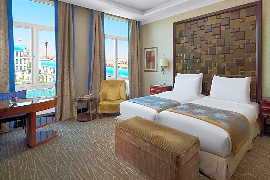 Palace Suite consisting of an intimate master bedroom, a grand living room and a cozy dining area, the chic and classic Palace Suite is sure to be the perfect setting for your own personal retreat, offering a sense of tranquility in the heart of busy Cairo. Each suite features LED screen TV with 100 channels. Private safe. Mini bar with charge. Free internet access or high speed internet access at an additional charge. Nespresso Machine. Working space. The bathroom includes a bathtub and a separate shower cabin as well as separate toilet in addition to a half-bath. Palace Suite has Full access to the Royal Club Lounge with its benefits.